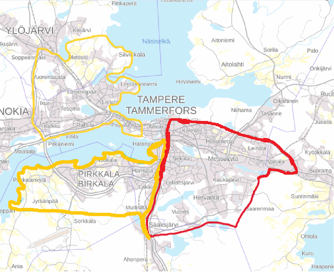 Länsi-Tampere (Merkattu kuvaan keltaisella)